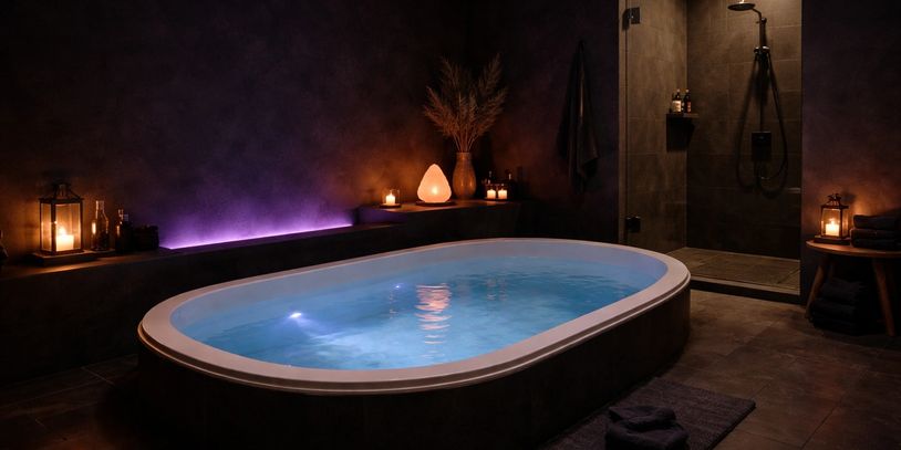 A saltwater magnesium float pool offers a unique environment designed to deeply relax both the body and mind. Filled with warm water saturated with Epsom salts (magnesium sulfate), the body becomes effortlessly buoyant, allowing you to float without physical strain. Combined with reduced light and sound, this creates a calming, low-stimulation space where the nervous system can settle and the mind can rest.